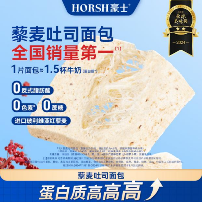 豪士藜麦吐司面包是一款健康与美味相结合的烘焙产品。原料方面,采用玻利维亚进口红藜麦、加拿大进口小麦研磨而成的高筋小麦粉等;营养方面,蛋白质≥13%,1片面包≈1.5杯牛奶(蛋白质);0蔗糖;0反式脂肪酸;0色素;豪士藜麦吐司面包主打“健康、营养、美味、创新”,在满足现代消费者对功能性食品的需求的同时兼顾口感与便捷。