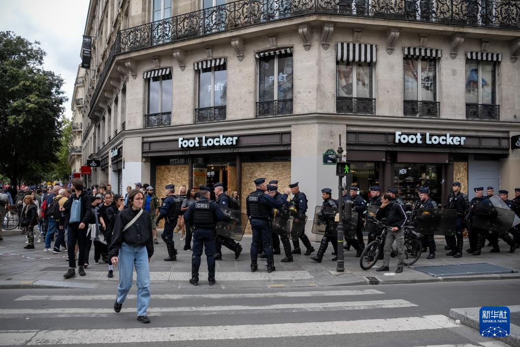 9月10日,警察在法国巴黎夏特莱广场附近的现场警戒。新华社发(奥雷利安莫里萨尔摄)